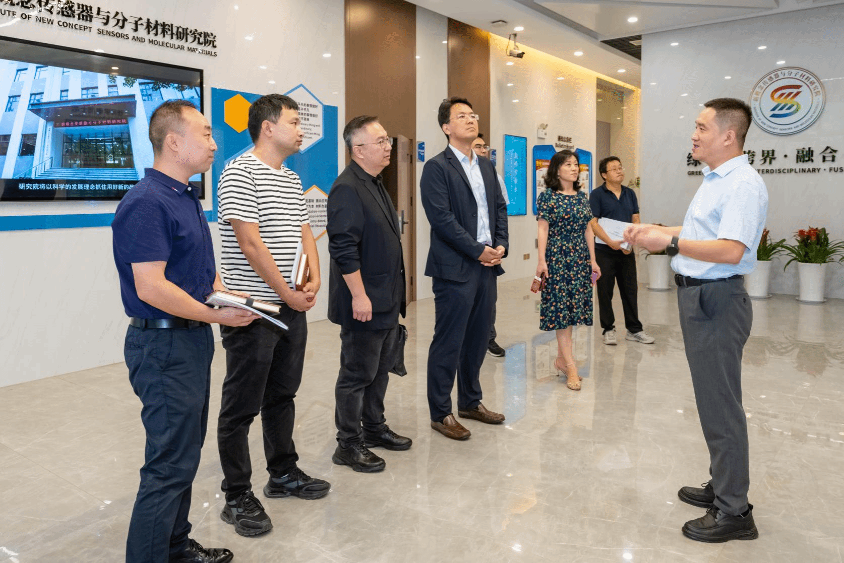 座谈结束后,国检集团一行走访参观了学院大型仪器平台和新概念传感器与分子材料研究院,进一步了解我院在先进仪器设备、科研平台建设及创新研究方面的成果。