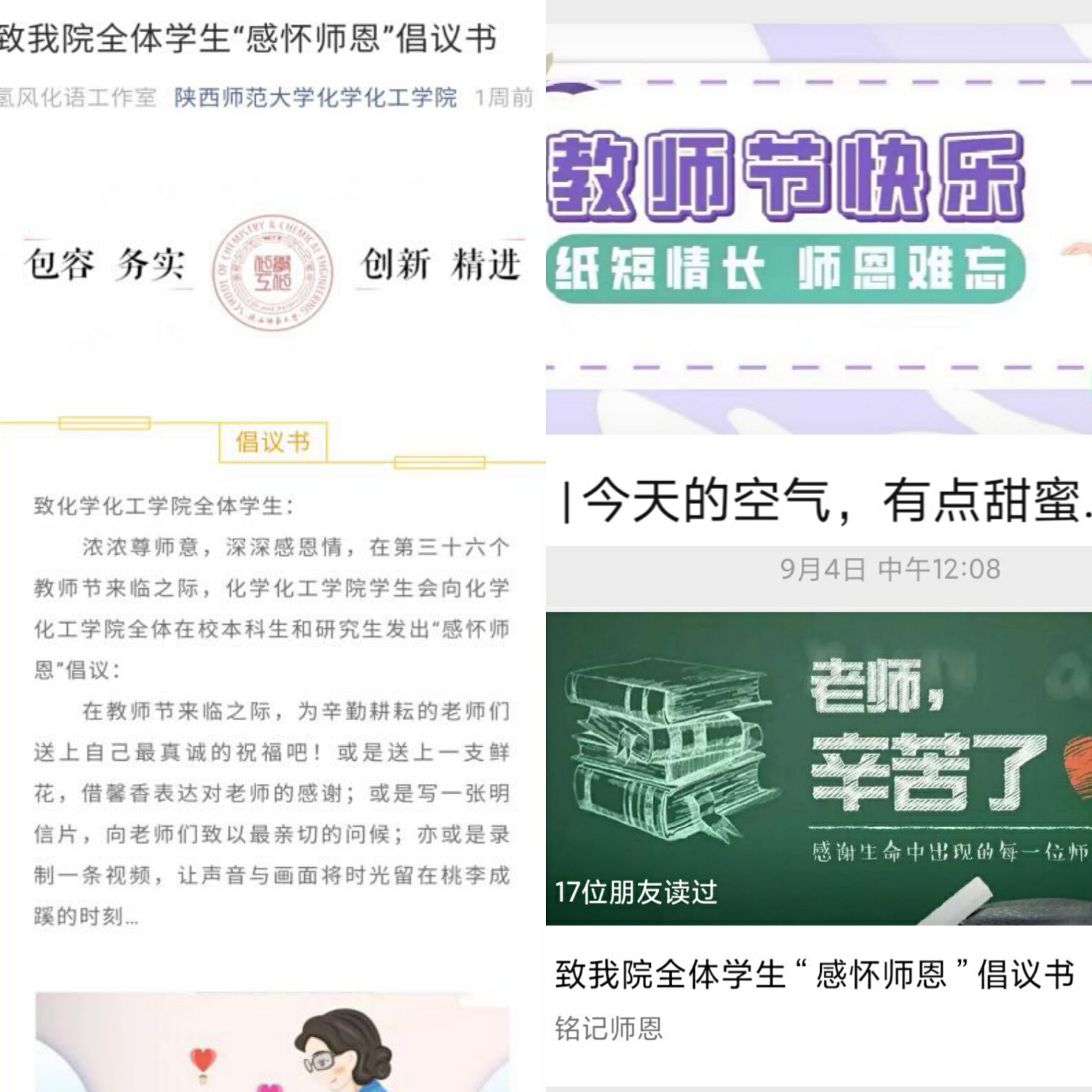 回首校园十余载,满目皆是师生情,三尺讲台存日月,一支粉笔写春秋。在第三十六个教师节来临之际,太阳成集团tyc151cc学生会向全体在校本科生和研究生发出“感怀师恩”倡议,呼吁同学们采取灵活多样的方式向老师表达感谢。