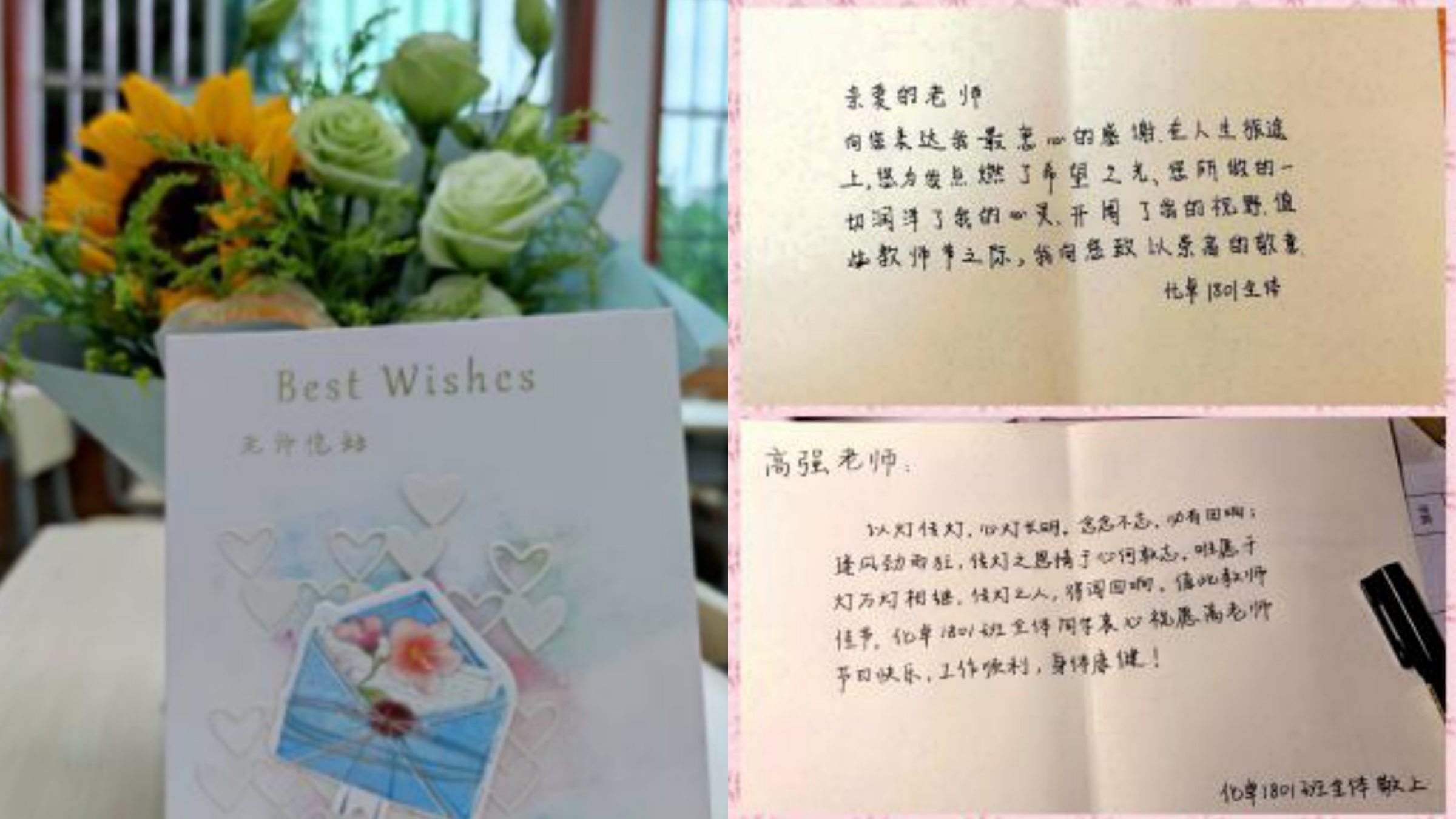 教师节前夕的座谈会上,化卓1801班同学们提前送上教师节的鲜花