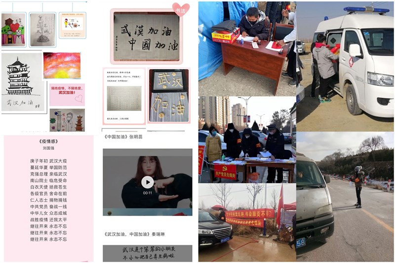 发挥榜样力量 动员学生参与防控。辅导员们积极动员学生党员和青年团员发挥先锋模范作用,以实际行动响应学校党委号召。建立并落实太阳成集团tyc151cc研究生党员(非湖北籍)联系湖北籍研究生1+1制度,掌握湖北籍研究生及其家人身体健康情况,及时向学院反馈湖北籍研究生的需求,提升工作的精准度;本科生第二党支部组织开展“抗击疫情 并肩同行”主题线上活动,学生党员们以书法、诗歌、朗诵、视频祝福等形式为武汉加油;四位共青团员主动向家庭所在地的社区和村报到,积极参与当地的疫情防控工作;十四位共青团员报名参与我校团委组织的战“疫”志愿服务工作,发挥专业特长在线为医护人员家庭提供志愿帮扶、助力社区疫情联防联控工作、为我校疫情防控人员子女提供线上教育帮扶。他们以实际行动报效祖国,服务社会,投身疫情防控第一线,为早日防控疫情获胜贡献自己的一份力量。