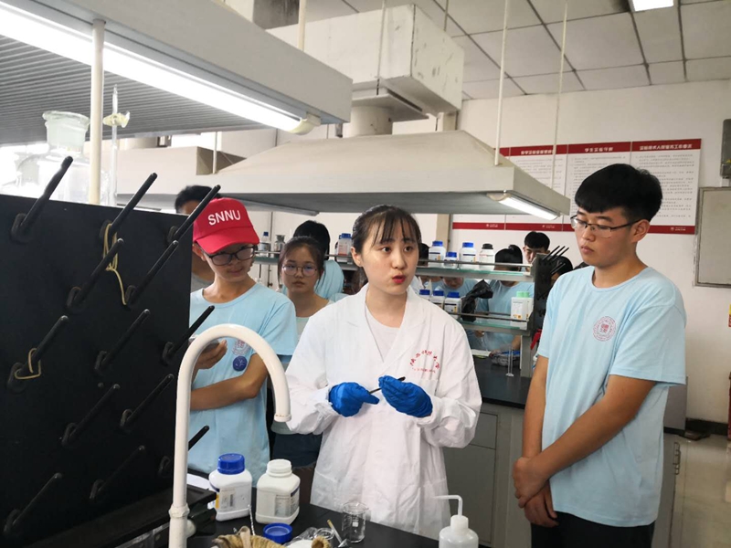24日营员们参观了图书馆和教育博物馆,纷纷感慨校园文化的丰富、图书馆的藏书量诠释着“抱道不曲,拥书自雄”的霸气、教育博物馆的历史气息无不展示着中国教育的发展与中华文化的传承。在座谈环节,营员们与我院6名本科生就高考填报志愿、专业选择、学院情况、就业情况、学院专业认知以及其他关心的问题进行了深入交流。随后,学院组织营员观看了化学兴趣实验演示,并在教育部重点实验室副主任严军林、刘凯强、樊娟和何攀四位老师的讲解中,参观了大型仪器平台。