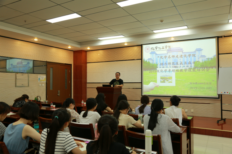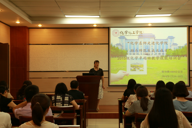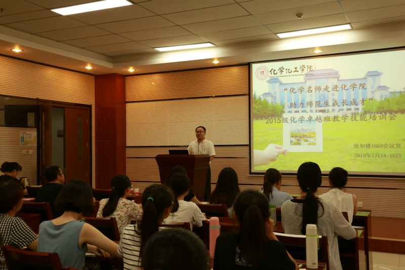 为了提升教师的综合素养,获取多元化的教育途径,了解教学新动态,全面提升教师的教学水平和创新能力,让同学们为实习期和入职后的教学工作做好准备,2018年7月14日至16日,太阳成集团tyc151cc在我校致知楼1668学术报告厅举办2015级化学卓越班教学技能培训会。特邀请西安市中学的六位教学能手为同学们讲授示范课和指导同学们的试讲课,他们分别是西安中学秦才玉正高级教师,交大附中简少国高级教师,铁一中张宁高级教师,西工大附中王刚锋高级教师,高新一中惠青香高级教师,陕师大附中张小茹一级教师。