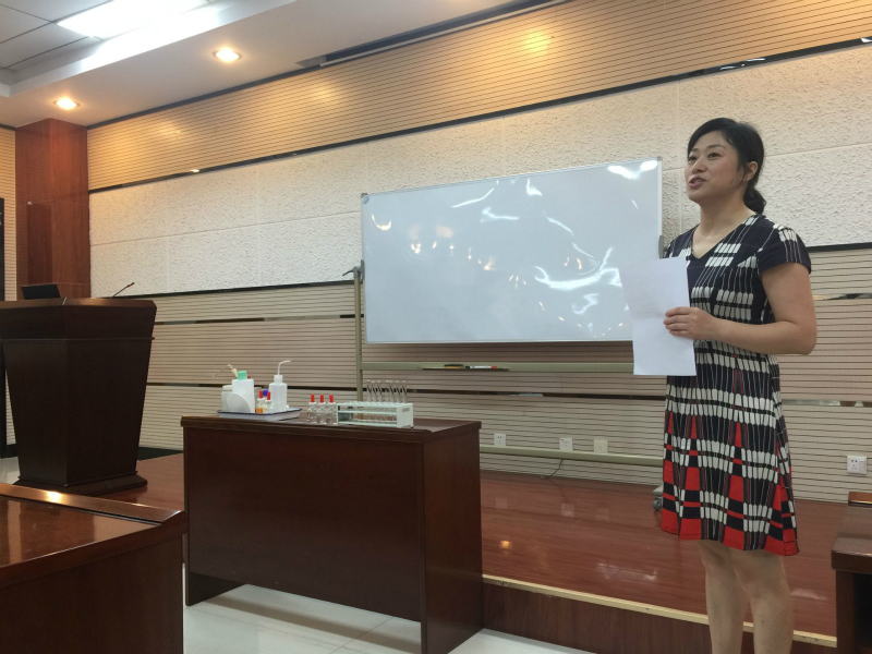 15日下午,培训会在薛亮副教授的主持下顺利进行。交大附中高级教师简少国老师进行了《盐类的水解》的示范课。他以引导学生利用pH试纸测定溶液pH值来确定溶液酸碱性的方式导课,激发了学生课堂参与兴趣。简老师将课堂的主动权交给学生,让学生亲自动手实验,锻炼了学生的实验操作能力。同时,他以清晰的逻辑将较有难度的盐类水解问题简单化,让同学们对本节课内容有了新的认识。然后,卓越班五位同学进行了试讲,简老师、杨承印、薛亮、严文法老师分别针对学生特点,对同学们做出了全面细致的点评,并为他们提出了中肯的建议与恰当的引导,同学们深受启发。