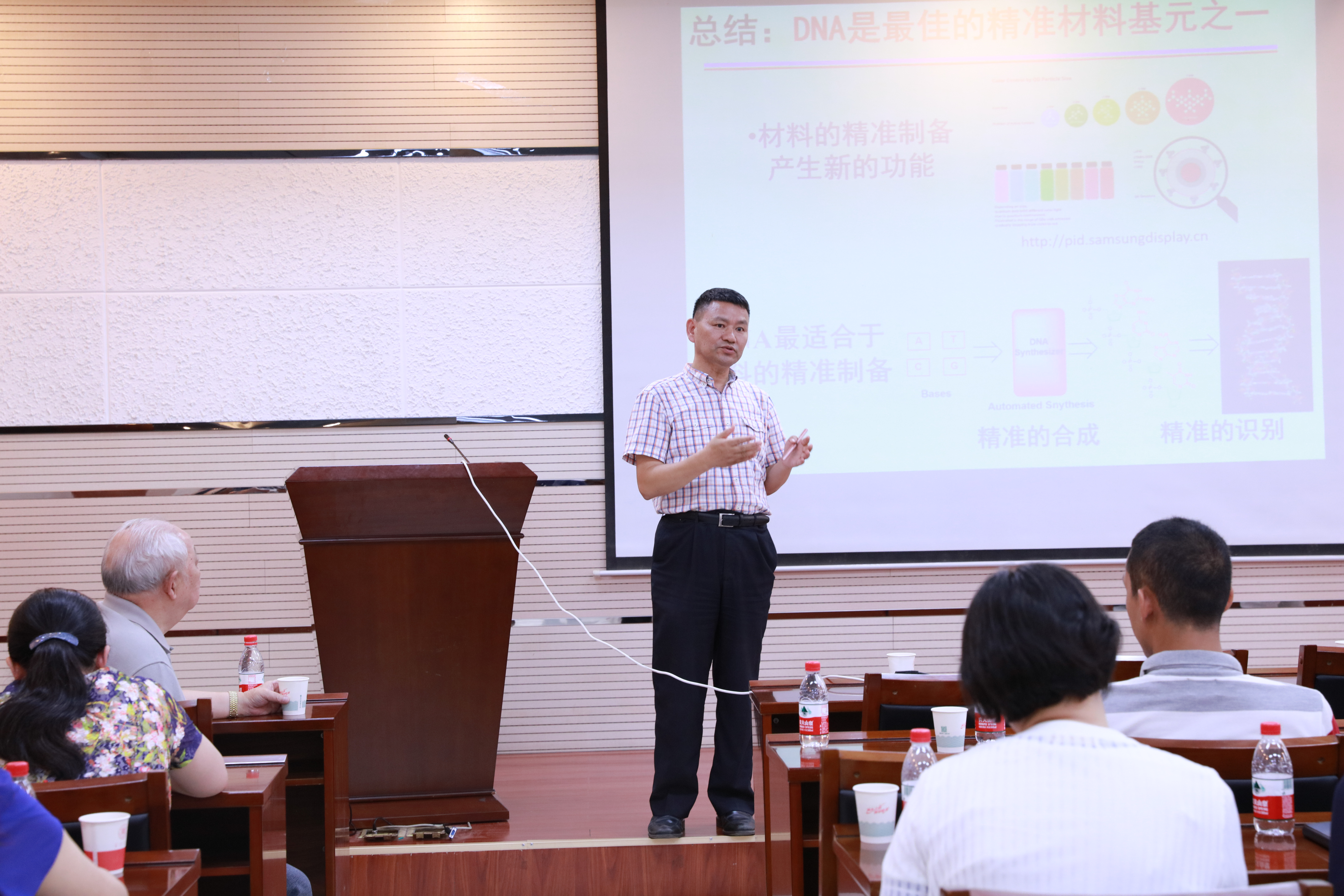 谭蔚泓院士重点介绍了通过DNA的精准制备和DNA分子之间的逻辑通路的设计和形成过程,构造出具有多功能的分子网络,而且这些分子网络可以模拟一些基本的生物功能,谭蔚泓院士的报告内容主要包括三大部分:(1)材料的精准制备和功能活性;(2)基于DNA的生物功能性材料;(3)基于DNA的功能性分子网络。并系统地介绍了以DNA作为材料基元进行精准材料制备的尝试,针对分子水平上的精准制备,提出了一些新的研究思路,同时和大家分享了构建基于DNA的生物材料与功能分子网络的最新研究进展。