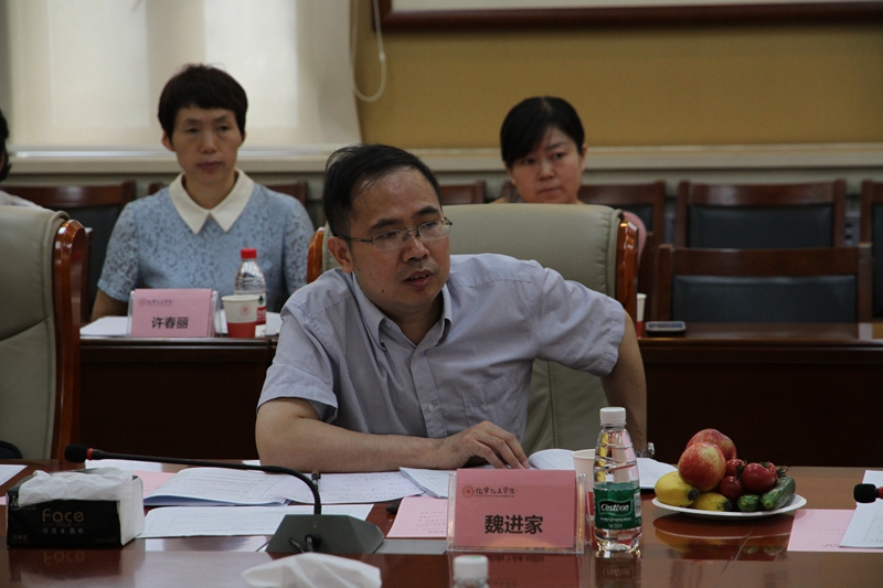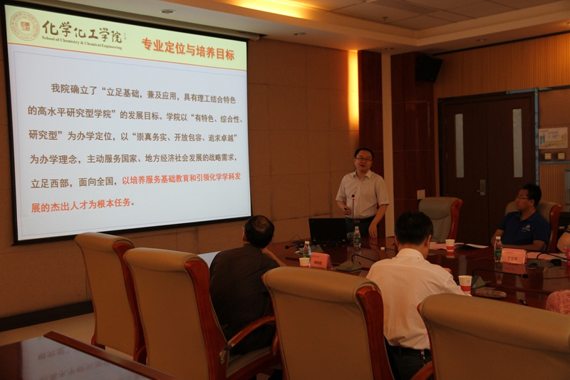 首先,薛东对专家的到来表示欢迎,随后从学院介绍、学位授权点概况、学科建设情况、人才培养和存在问题与改进措施五个方面向专家汇报了我院化学工程与技术一级硕士学位授权点的建设情况。他讲到,化学工程与技术学科在发展过程中取得了一些成就,但是由于专业起步较晚,目前存在着师资队伍较小、高层次人才队伍不足、科研成果及转化相对较弱、研究生数量偏少等问题。最后表示在今后的学科建设中将继续加大人才引进力度,培养专业科研人员,增加研究生招生数量,成立省部级重点实验室,完善化学工程与技术学科建设。