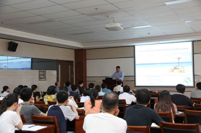 报告中,Brain Space教授为我院师生讲解了如何利用理论计算化学解决MOF材料的气体吸附方面的问题;施晓东教授则为我们展现了有机化学的神奇与奥秘以及他们课题组在1,2,3-三氮唑化学方面取得的重要研究进展;李霄鹏教授通过生动幽默的语言为我们阐述了如何通过自组装的策略逐级构筑优美的笼状超分子结构。最后,蔡健峰教授为我们讲述了生物有机化学方面的知识以及他们在多肽组装方面所取得的进展。整场报告涵盖面广,信息量大,具有启发性。