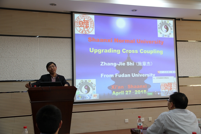 4月27日下午,复旦大学施章杰教授受邀在我院致知楼1668报告厅为我院师生作了一场题为“Upgrade of Cross Coupling”的精彩报告。本次学术会议由薛东院长主持,我院曹睿教授、杨明瑜副教授、张伟副教授、郑浩铨副教授等教师及相关专业博士、研究生和本科生聆听了此报告。