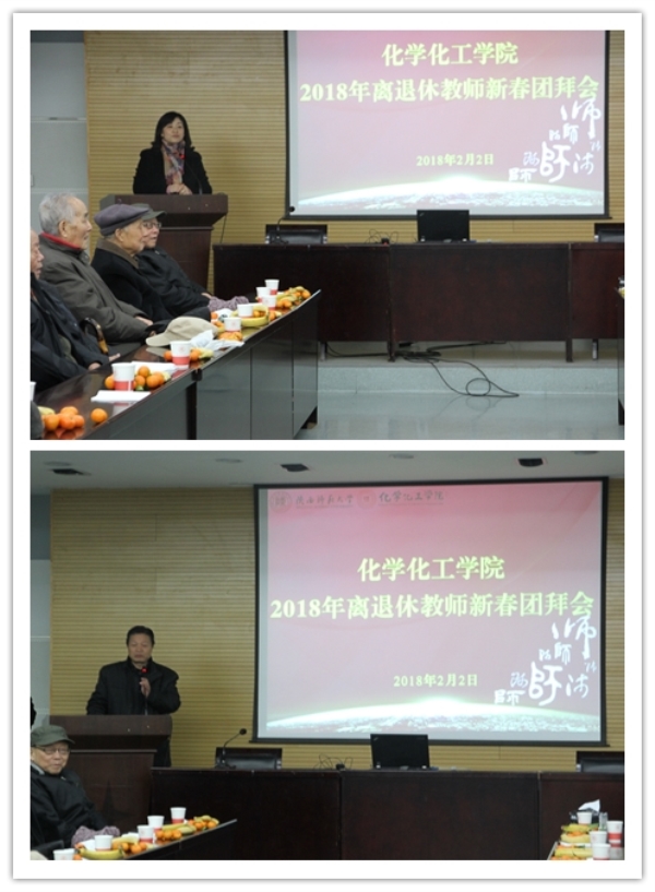 团拜会上,吕九如老师、石康培老师、赵忠顺老师等代表退休教职工感谢学院对老同志的关心和关爱,对化学学科的发展建言献策,对年轻的教师们寄予了深切的厚望。面对退休教师们的殷殷期望和热切鼓励,有机化学教学团队负责人李楠和无机化学团队负责人张伟强代表青年教师表示:热爱学院,一定会立足学科发展,积极投身学科实践,在推动学院发展的过程中实现个人的人生价值。