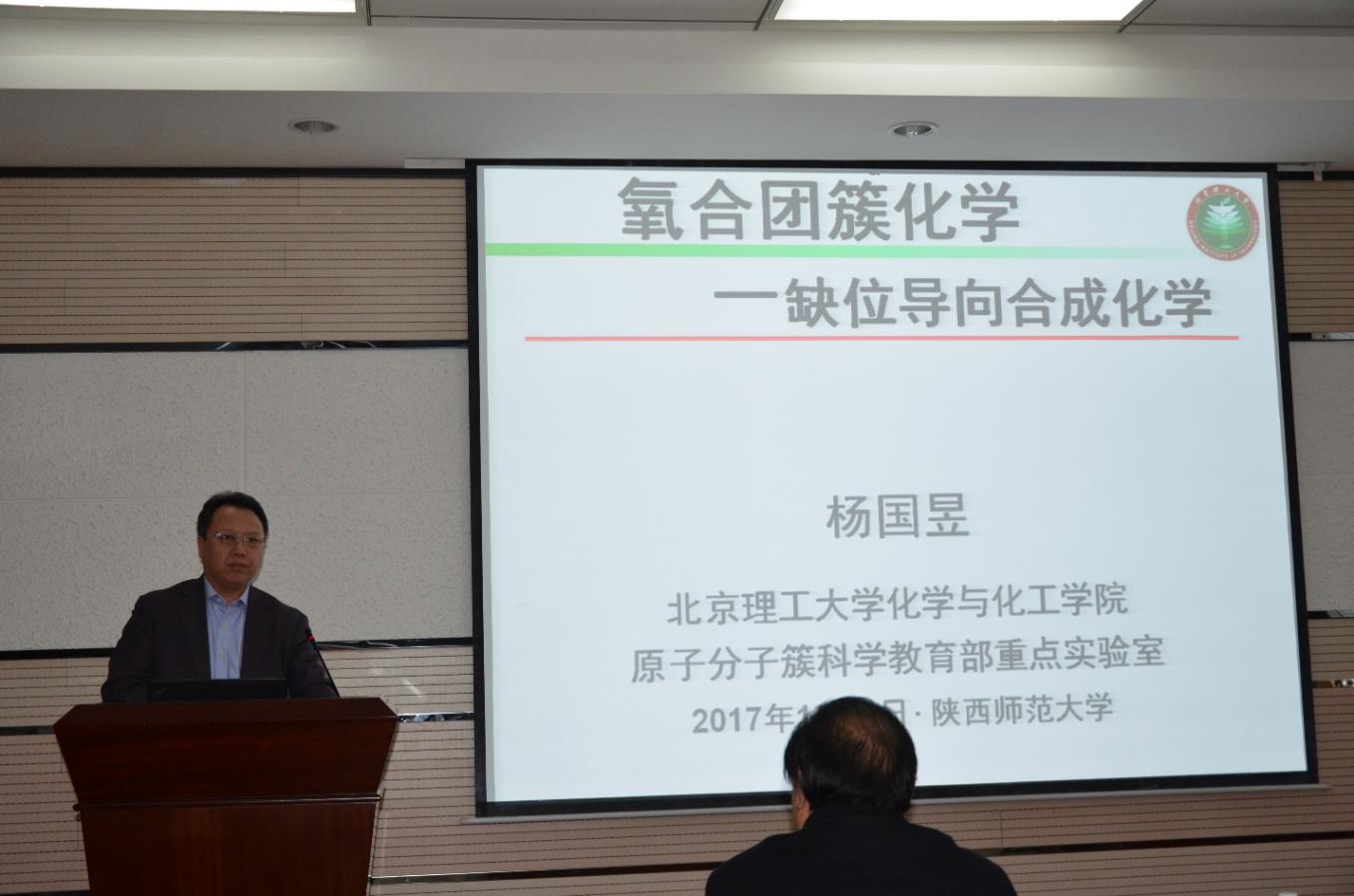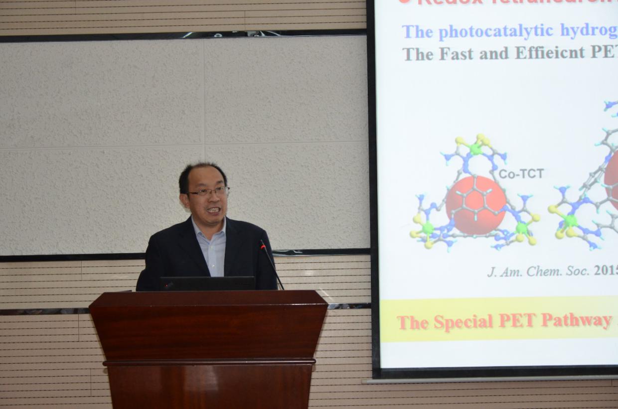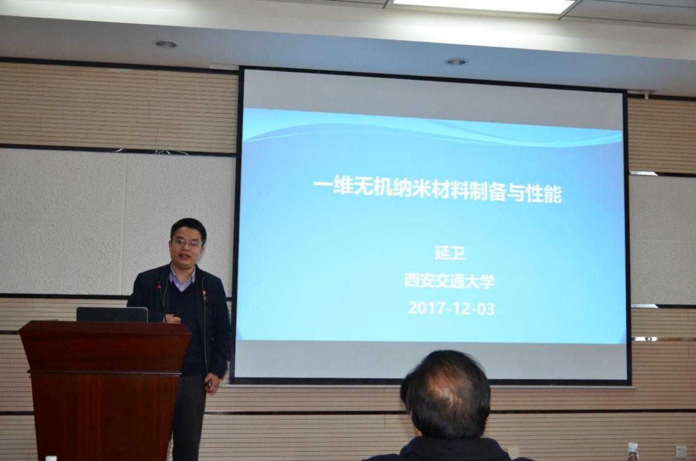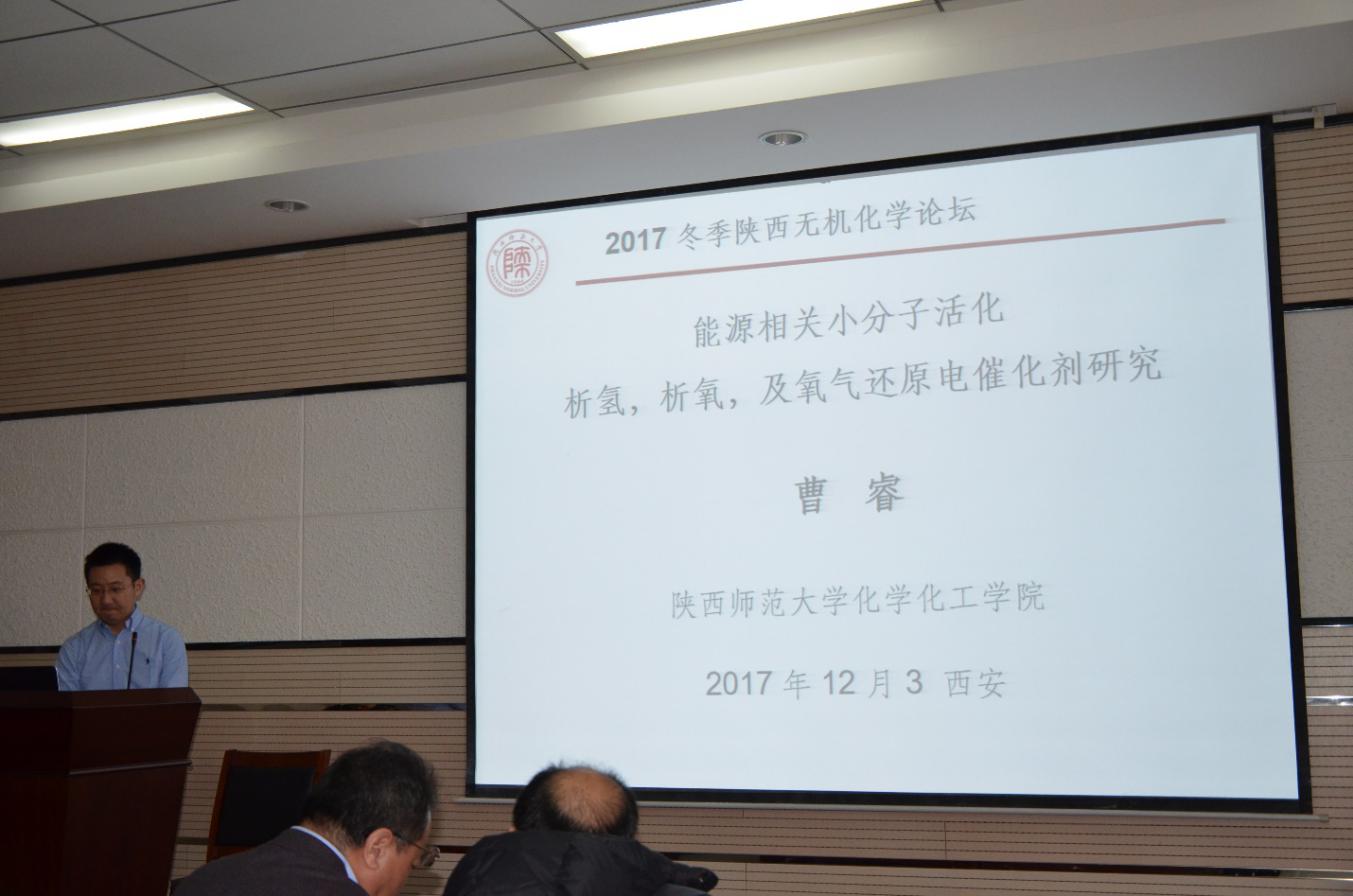 12月3日,2017陕西无机化学研讨会在长安校区致知楼召开。论坛开幕式上,化学会理事长、西北大学副校长王尧宇教授和太阳成集团tyc151cc书记高玲香教授为此次会议致辞。出席此次会议的专家学者包括西安工程大学副校长樊增禄教授,大连理工大学段春迎教授,北京理工大学杨国昱教授,西安交通大学延卫教授,太阳集团tyc151副校长高子伟教授、白俊峰教授、曹睿教授、太阳成集团tyc151cc副院长焦桓教授和无机化学学科的全体教师。来自北京理工大学、西安交通大学、大连理工大学、太阳集团tyc151、西北大学、西安工程大学等高校的专家学者、博士生、硕士生共计50多人参加了此次研讨会。上午的学术研讨会上,段春迎、杨国昱、曹睿和延卫四位教授,分别以金属有机限域体系的可控构筑与超分子催化、缺位导向合成化学、能源相关小分子活化及一维无机纳米材料的制备及性能为题,做了精彩的学术报告。
