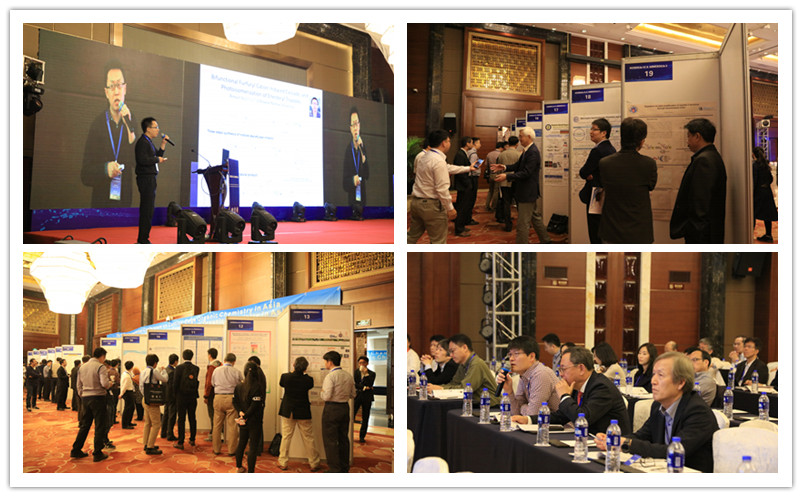 2017年11月4日,共有11个邀请报告,51个一分钟报告和51个墙报展出。在会议上,来自北京大学的杨震教授、Tokyo Institute of Technology的Shinichiro Fuse教授、泰国Chulalongkorn University的Panuwat Padungros教授、University of Malaya的Hairul Anuar Tajuddin教授、日本Kyushu University的Mitsuru Shindo教授、韩国Pohang University of Science and Technology的Hyun-Suk Lim教授、韩国Korea University的Hak Joong Kim教授、台湾National Health Research Institutes的夏克山教授、我校太阳成集团tyc151cc的王超教授、香港中文大学的徐哲教授、日本Tohoku University的Hidetoshi Tokuyama教授相继从有机化学以及前沿交叉领域等方面做了精彩的汇报,引起了与会代表们的激烈讨论。我校太阳成集团tyc151cc俞斌勋副教授作了一分钟报告和墙报展示。