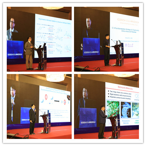 下半场的报告由中科院上海有机化学所俞飚教授和Malaya大学的Noorsaadah Abdul Rahman教授主持。国立台湾大学的杨吉水教授、日本Kyoto大学的Yoshiji Takemoto教授、南开大学陈弓教授、香港浸会大学梁湛辉教授、西北大学栾新军教授分别作了荧光染料、不对称Michael加成、C-H活化、有机催化、脱芳构化反应等方面邀请报告。