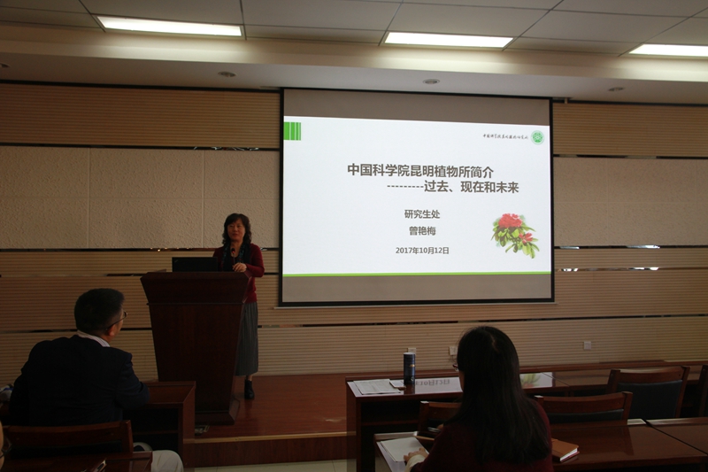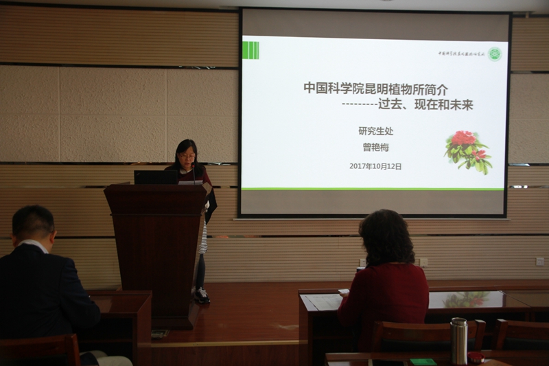 为了拓宽我院学生专业视野,帮助学生在研究生报告时更好地选择专业和报考单位,2017年10月12日上午9:30,学院邀请中国科学院昆明植物研究所为我院2015级学生做了研究生招生宣讲,昆明植物研究所研究生处副处长曾艳梅老师为同学们介绍了昆明植物所的科研方向和研究现状,以及研究生的培养的相关情况,紧接着校友黄胜雄教授为同学们做了精彩的学术报告。我院院长薛东教授、副院长丁立平教授和翟全国教授等参加了本次会议。丁立平副院长主持了此次会议。