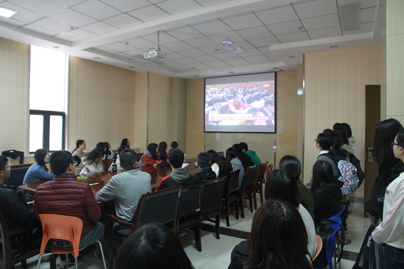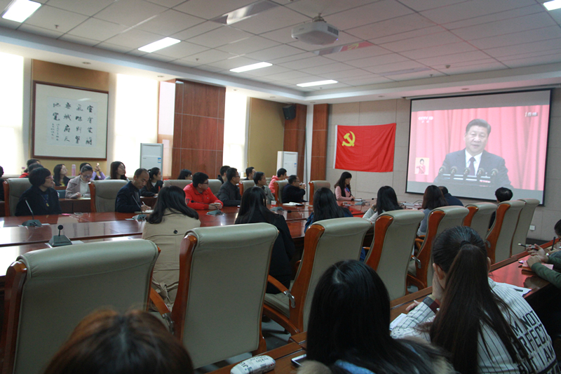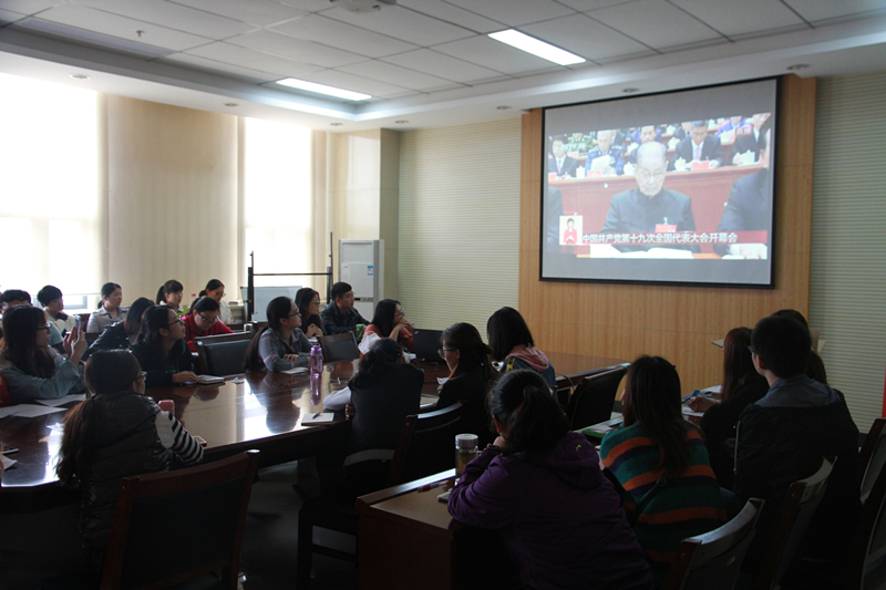 今天上午,中国共产党第十九次全国代表大会在北京盛大召开,太阳成集团tyc151cc党委委员、党政领导,教工支部书记和党员代表,研究生党员、本科生党员和入党积极分子分别在致知楼1568、1621、1347和1447会议室收看十九大开幕式。教工中教应化支部单独组织党员在1555室集中收看十九大开幕式。