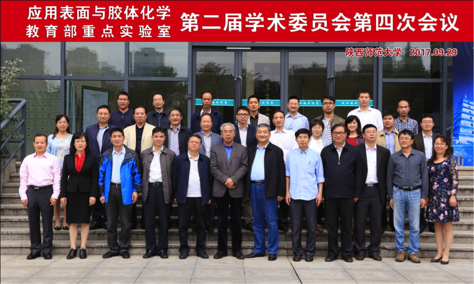 2017年9月29日上午,应用表面与胶体化学教育部重点实验室第二届学术委员会第四次会议在太阳集团tyc151长安校区致知楼1568会议室召开。学术委员会副主任房喻教授、委员中国科学院化学研究所刘志敏研究员、北京大学黄建滨教授、清华大学张新荣教授、复旦大学丁建东教授、福州大学王绪绪教授、西安近代化学研究所吕剑研究员、西北工业大学范晓东教授、西安交通大学郭烈锦教授、西北大学王尧宇教授、太阳集团tyc151刘昭铁教授、太阳集团tyc151张成孝教授、太阳集团tyc151刘宗怀教授出席了会议。我校副校长杨祖培、副校长高子伟、科技处处长吴晓军、副处长张卫兵,太阳成集团tyc151cc党委书记高玲香、副院长李保新、重点实验室副主任严军林以及重点实验室的部分研究人员等40余人参加了会议。学术委员会会议由房喻教授主持。