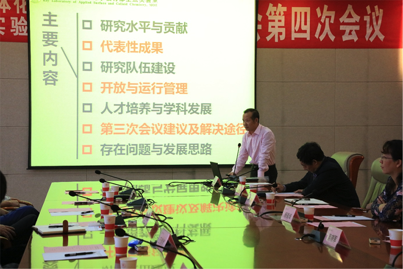 首先刘昭铁主任介绍了出席此次会议的委员、学校、相关部门和学院领导;随后杨祖培副校长致欢迎词,感谢各位委员对重点实验室的关心与支持,并简要介绍了学校关于部级重点实验室的“一室一策”,同时杨祖培副校长谈到重点实验室面临的评估压力极大,希望各位委员继续给重点实验室建设提出建设性意见,使我们在接下来的工作能够采取积极措施,既解决眼前问题,又着眼长远发展,把重点实验室建设得更好,从而提高化学学科的影响力。