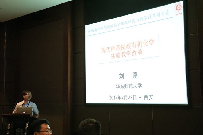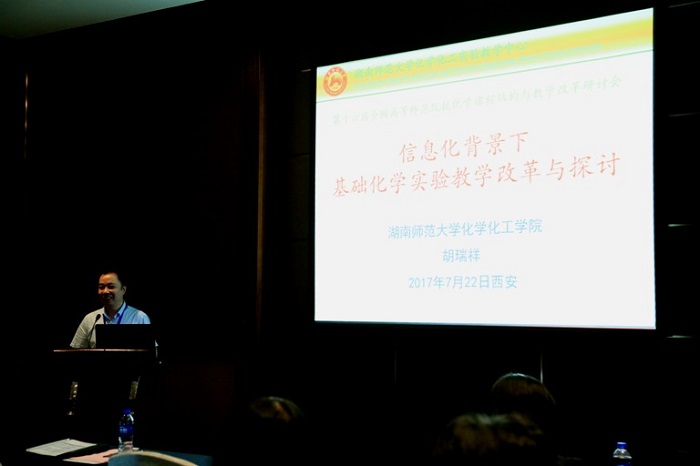 2017年全国高等师范院校化学课程结构与教学改革研讨会期间,共举行7场大会报告,18场邀请报告。7月22日下午在第二分会场,北京师范大学卢忠林教授、湖南师范大学胡瑞祥教授、河北师范大学曾艳丽教授、华中师范大学原弘教授、东北师范大学孙文东教授、西南大学李念兵教授、西北师范大学杨志旺教授、华东师范大学刘璐教授以及我校太阳成集团tyc151cc张尊听教授等9位专家学者分别给参会的听众带来了精彩的报告。