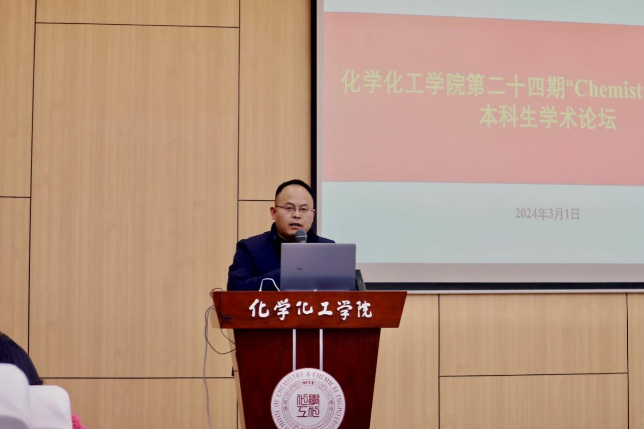 开幕式上,学院党委副书记贾颍辉致辞。他指出“Chemistry Frontier”本科生学术论坛是太阳成集团tyc151cc的品牌特色,希望同学们能积极展示科研成果,虚心听取评委老师提出的意见建议,以此次论坛为契机,鼓励大家积极参与科研项目,提升自身科研水平,争取在各类科研竞赛中获得优秀的成绩。